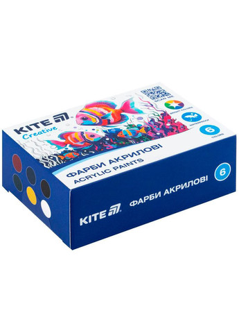 Акрилові фарби Kite Creative K-271, 6 кольорів, кожна баночка по 20 мл — палітра для безмежної творчості! Фарби підходять для малювання на різноманітних поверхнях, таких як: папір, тканина, кераміка, скло, метал, камінь, дерево і пластик. Легко наносяться, не потребують підготовки поверхні та швидко висихають. Після висихання фарби стають водостійкими та не вигорають на світлі, тому ваші роботи збережуть яскравість і насиченість кольорів надовго. Безпечні для дітей — мають нейтральний аромат та безпечні компоненти у складі.