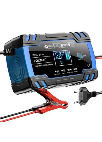 Автоматичний зарядний пристрій для авто-мото акумуляторів Foxsur FBC122406D 24V 3A/12V 6A Foxsur FBC122406D Smart Battery Charger - автоматичний імпульсний зарядний пристрій для заряджання акумуляторів легкових та вантажних автомобілів, мотоциклів і т.д. з функцією десульфатації. Даний зарядний пристрій застосовується для заряджання/відновлення літієвих, LiFePo4, AGM, GEL, VRLA, свинцево-кислотних акумуляторів ємністю від 6-120Ач (для 12В) та 6-60Ач (для 24В). Інтелектуальний зарядний пристрій після підключення до акумулятора та вибору режиму більше не потребує уваги: зарядний тестує стан акумулятора та вибере режим заряду залежно від температури та стану батареї. Після завершення процесу заряду зарядний пристрій автоматично вимикається та переходить у режим підтримання заряду. Використовувати зарядний пристрій дуже просто: Підключіть пристрій до розетки; Підключіть клеми до акумулятора; Виберіть режим заряджання; Після повного заряджання на екрані з'явиться напис "FULL". Для зміни режиму роботи пристрою використовується сенсорна кнопка – MODE: Режим - LITHIUM використовується для заряджання 12.6 або 25.2 В (тільки для акумуляторів з BMS): Режим - LEAD використовується для зарядки свинцево-кислотних, AGM, GEL, SLA, WET, Calcium батарей: Режим - LiFePO4 використовується для заряджання мотоциклетних та літій залізо фосфатних батарей: Режим – REPEIR, використовується для відновлення або ремонту вживаних, розшарованих або сульфатованих батарей, а також їх зберігання. Тривалість процесу відновлення щонайменше 16 годин. Переваги: 7-етапний процес зарядки, керований мікропроцесором, забезпечить найкраще застосування та ефективну зарядку акумулятора; Напруга заряджання адаптується до температури, що може запобігти надмірному або недостатньому заряду акумулятора; Можливість підзарядити сильно розряджений акумулятор або сульфований акумулятор; Захист від зворотної полярності; захист від короткого замикання; захист від перезарядки; забезпечення іскробезпеки; РК-дисплей з підсвічуванням на якому відображається інформація про рівень заряду, напругу, струм, температуру; Швидка зарядка, стійка робота та висока надійність. Характеристики: • Мікропроцесорне керування (ЦП). • 7-СТУПЕНА АВТОМАТИЧНА ЗАРЯДКА: • Це повністю автоматичний зарядний пристрій із 7 ступенями заряджання. • Автоматична зарядка захищає акумулятор від перезаряджання. Таким чином, ви можете залишити зарядний пристрій підключеним до акумулятора на невизначений термін. • 7-ступінчасті зарядні пристрої підходять для більшості типів акумуляторів, включаючи кальцієві, гелеві AGM, літієві, LiFePo4, рідинні, свинцево-кислотні акумулятори. Вони також можуть допомогти відновити розряджені та сульфатовані акумулятори. • Типи акумуляторів: більшість типів свинцево-кислотних акумуляторів, включаючи кальцієві, гелеві AGM, літієві, LiFePo4, рідинні, свинцево-кислотні і т.д. • Технологія SwitchMode: Так • Захист від полярності: Так • Захист від короткого замикання на виході: Так • Захист без батареї: Так • Захист від перенапруги: Так • Захист від перегріву: Так • Вентилятор • Вхідна напруга: 100–240 В змінного струму, 50–60 Гц. • Номінальна потужність: 12 В 6 А 24 В 3 А • Мінімальна початкова напруга: 8,0 Ст. • Діапазон акумуляторів: 6-120 Ач • Термічний захист: 65°C+/-5°C • Ефективність: прибл. 85%. • Відповідність стандартам: CB, CE, IEC60335, EN61000, EN55014. • Розміри (Д×Ш×В): 160×100×62 мм 