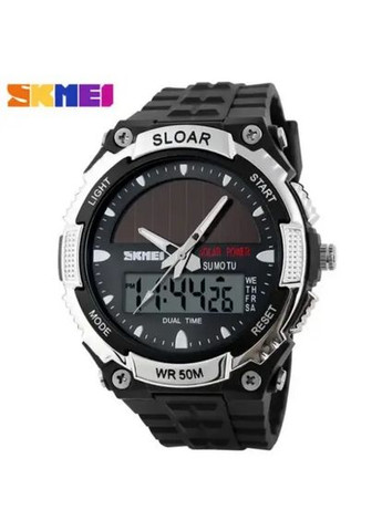 Чоловічий годинник Skmei 1049SI Silver — стильний та практичний годинник, який поєднує сучасний дизайн із функціональністю. Завдяки вбудованій сонячній батареї він автоматично заряджається від світла, що забезпечує тривалу автономну роботу. Корпус із нержавіючої сталі та мінеральне скло роблять годинник стійким до подряпин і вологи. Годинник оснащений електронним дисплеєм із підсвіткою, секундоміром, будильником та відображенням дати, що робить його зручним як для щоденного носіння, так і для активного відпочинку. Основні характеристики: • Тип: чоловічий електронний годинник • Джерело живлення: сонячна батарея + акумулятор • Механізм: кварцовий • Циферблат: стрілочно-цифровий • Матеріал корпусу: нержавіюча сталь • Скло: мінеральне • Діаметр корпусу: 45 мм • Товщина корпусу: 14 мм • Довжина ремінця: 24 см • Функції: підсвітка, дата, будильник, секундомір • Водонепроникність: 5 ATM (миття рук, дощ, не для купання) • Колір корпусу: сріблястий • Колір циферблату: чорний • Колір ремінця: чорний • Протиударні: так • Стан: новий Це надійний та стильний варіант для чоловіків, які цінують комфорт, практичність і сучасний дизайн.