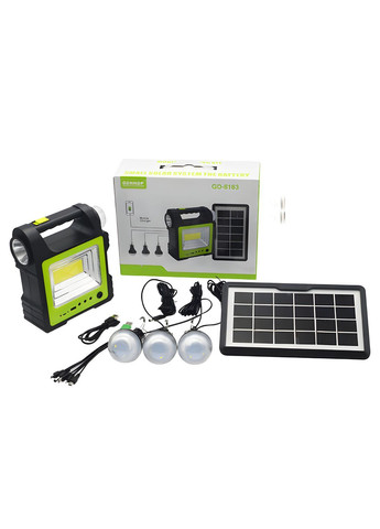 GD-8183 — це портативна автономна сонячна система, яка може бути використана як джерело світла в будь-якому місці, де немає доступу до електрики — під час походів, риболовлі, на дачі або навіть вдома в разі вимкнення електрики. Акумуляторна система дуже проста у використанні та має напрямний ліхтар і загальний бічний світлодіодний ліхтар. Особливості: ● Сонячна аварійна лампа для непередбачених ситуацій і поїздок. ● Автономне заряджання від сонця з плином часу. ● Функція Power Bank для заряджання смартфонів та інших пристроїв. ● Яскраве та рівномірне освітлення за допомогою трьох світлодіодних ламп. ● Міцність і надійність у будь-якій ситуації, ідеальне рішення для різних цілей. ● Сонячна система: освітлення + заряджання для мобільних телефонів. ● Портативна енергетична система із сонячною зарядкою — енергія доступна в будь-який час і в будь-якому місці, також можливість заряджання від сонця. ● Аварійна лампа + сонячний зарядний пристрій для смартфона. Характеристики: ● Вбудований акумулятор забезпечує годинник безперервного освітлення. ● Три портативні потужні світлодіодні лампи. ● Портативний ліхтарик для використання в будь-якій ситуації. ● Можливість заряджання мобільних телефонів та інших електричних пристроїв. ● Компактний і міцний дизайн для зручності транспортування. ● Розмір сонячної панелі: 25*15 см. ● Розміри центрального освітлення: довжина 21 см, ширина 16,5 см, товщина 7,5 см.