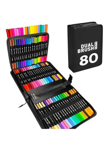 Цей набір акварельних маркерів Dual Brush 80 шт являє собою ідеальне поєднання універсальності та якості для художників усіх рівнів. Кожен маркер має двосторонній наконечник: з одного боку - тонкий пензлик для детальної роботи та тонких ліній, з іншого - широкий наконечник для швидкої та рівномірної заливки великих ділянок. Ця унікальна особливість робить їх ідеальними інструментами для створення творів мистецтва з різноманітними текстурами та деталями. Фарби на водній основі можна змішувати і легко змивати з більшості тканин. Таким чином, ви отримуєте як кольорові маркери, так і кольорові тонкі ручки, які чудово підходять як для дітей, так і для дорослих.