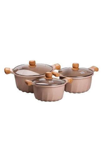 Сферична форма каструль дозволяє рівномірно розподіляти тепло по всій поверхні, а кришка щільно закривається, зберігаючи аромат та вологу страви. Каструлі оснащені зручними ручками, які не нагріваються під час використання, забезпечуючи безпеку та комфорт при переміщенні. Алюмінієвий матеріал має відмінну теплопровідність, що скорочує час приготування та робить процес більш енергоефективним.