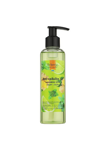 Олія антицелюлітна "Top Beauty Anti-cellulite Oil" сприяє відновленню шкіри та позбавленню від "апельсинової скоринки" в проблемних зонах. Вдало підібрана композиція стимулює обмінні процеси, покращує регенерацію епідермісу. Олія зміцнює мембрани клітин, тонізує м'язи, забезпечує додаткове харчування клітин киснем, покращує кровообіг. Основна перевага олії полягає в її здатності стимулювати кровообіг у підшкірному шарі. Це відіграє важливу роль у скороченні жирових відкладень. Збільшення обсягу жирових клітин призводить до порушення кровопостачання в проблемних зонах і ускладнює доступ жиророзріджувальних речовин. Процедури, що сприяють посиленню кровотоку, буквально виводять жир, зменшуючи розмір жирових клітин. Особливості: коригує силует та розтяжки, вирівнюючи рельєф шкіри; виводить із підшкірного шару токсини та покращує мікроциркуляцію крові; зменшує набряки, спричинені скупченням застійної рідини в організмі; завдяки широкому спектру активних компонентів має миттєву ліфтингову та тонізуючу дію. Спосіб застосування: Нанесіть олію на проблемні ділянки: стегна, живіт, сідниці, боки. Загорніть ділянки плівкою і надягніть теплий одяг на 1-2 години 2-3 рази на тиждень. Можна наносити олію на потрібні місця щодня без змивання. Олія не викликає поколювання, приємно зігріває. Після використання рекомендується вимити руки.