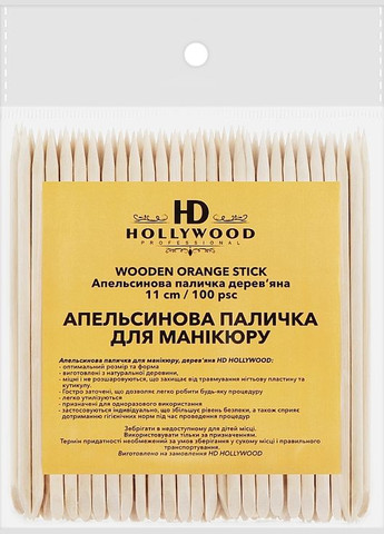 Апельсинові палички для манікюру від HD Hollywood — це універсальний інструмент для професійного та домашнього догляду за нігтями. Апельсинові палички виготовлені з натуральної деревини, що забезпечує їх міцність і безпеку для шкіри. Вони полегшують відсування кутикули, очищення нігтів та корекцію манікюру, не пошкоджують нігтьову пластину. Підходять для різних манікюрних процедур: гігієнічного, апаратного, комбінованого манікюру. Палички легкі та зручні, чудово підходять як для домашнього, так і для професійного манікюру. Вони стануть надійним інструментом для вашого догляду! Особливості HD Hollywood апельсинові палички для манікюру, 11 см: - виготовлені з натурального екологічного апельсинового дерева, яке вирізняється антибактеріальними властивостями;- зручна довжина 11 см дозволяє легко маніпулювати інструментом та працювати з нігтями будь-якої довжини;- передбачені два кінці — загострений для очищення під нігтем та плоский для відсування кутикули;- м'яка текстура дерева не розшаровується, не пошкоджує нігтьову пластину та шкіру навколо;- призначені для одноразового використання, тому сприяють абсолютній безпеці та дотриманню гігієнічнмх норм.