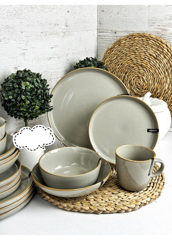Сервіз столовий Ardesto Umbria AR0016UG 16 предметів світло-сірий Сервіз столовий Ardesto Umbria AR0016UG для 4 осіб виготовлений з кераміки, ідеальний для щоденного використання. Весь столовий посуд міцний і стійкий до пошкоджень. Сервіз можна мити в посудомийній машині. Складається із 16 предметів. Характеристики: Тип: сервіз столовий Матеріал: кераміка Кількість осіб: 4 Кількість предметів: 16 Можна мити в посудомийній машині Колір: світло-сірий Серія: Umbria Виробник: Ardesto Комплектація: Тарілка обідня 27 см: 4 шт Тарілка десертна 19 см: 4 шт Тарілка супова 20 см 820 мл: 6 шт Салатник 14 см 660 мл: 4 шт Чашка 380 мл: 4 шт