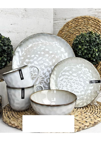 Сервіз столовий Ardesto Apulia AR0018AG/2 18 предметів бежевий Сервіз столовий Ardesto Apulia AR0018AG/2 виготовлений із кераміки, ідеальний для щоденного використання. Весь столовий посуд міцний і стійкий до пошкоджень. Сервіз можна мити в посудомийній машині. Характеристики: Тип: сервіз столовий Матеріал: кераміка Кількість предметів: 18 Можна мити в посудомийній машині Колір: бежевий Серія: Apulia Виробник: Ardesto Склад набору: Обідня тарілка 26,6 см: 2 шт Десертна тарілка 20,3 см: 4 шт Супна тарілка 20,8 см: 4 шт Салатник 16,2 см: 4 шт Чашка 450 мл: 4 шт