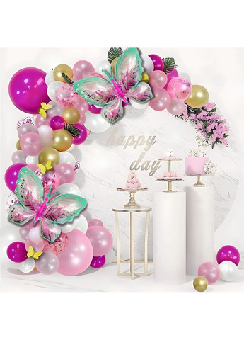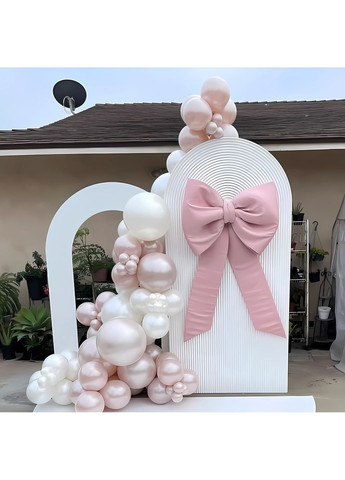 Товари в комплекті: Кулі латекс 5" 12 см Металік Білий перламутр (00616) 5 Кулі латекс 10" 25 см Металік Білий перламутр (00578) 5 Кулі латекс 12" 30 см Металік Білий перламутр (00601) 5 Куля латекс 18" 45 см Металік Білий перламутр (03361) 1 Кулі латекс 5" 12 см Металік Рожевий (03714) 5 Кулі латекс 10" 25 см Металік Рожевий (00587) 10 Кулі латекс 12″ 30 см Металік Рожевий (00611) 10 Куля латекс 18" 45 см Металік Рожевий (03365) 1 Кулі латекс 5" 12 см Пастель фуксія (00697) 5 Кулі латекс 10" 25 см Пастель фуксія (00629) 5 Кулі латекс 12" 30 см Пастель фуксія (00639) 5 Куля латекс 18" 45 см Пастель Фуксія (02993) 1 Кульки латекс 10" 25 см Металік Золото (00582) 10 Кулі латекс 10" 25 см Металік Пудра (06208) 10 Кулі латекс 12" 30 см Прозорі з блискучими конфетті Рожеве золото (00762) 10 Куля фольгована фігурна 75х56 см Метелик королівський Рожевий з зеленим (07908) 2 Стрічка пластикова для формування арки 5 м (00217) 1 Стрічка декоративна Рожевий 10 м (00212) 2 Самоклеючі монтажні кріплення 2 шт (03263) 1 Клейові точки тимчасової липкості для зклеювання куль 20 штук на листі (00204) 2 Лист пальми монстери Зелений Довжина з паличкою 40 см (00219) 3
