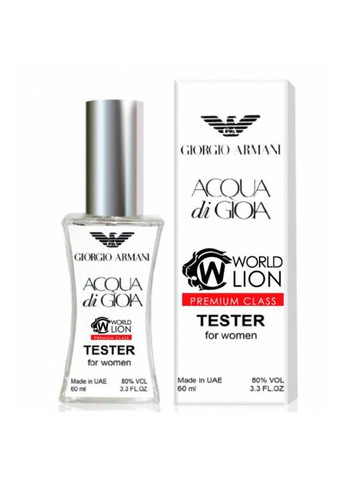 Групи ароматів Квіткові Початкова нота Лимон М'ята Нота серця Жасмин Півонія Рожевий перець Кінцева нота Кедр Лабданум Цукор Бренд Giorgio Armani Модель Acqua di Gioia Жіночий Об'єм 10 мл Рік випуску 2010 Флакон Скло