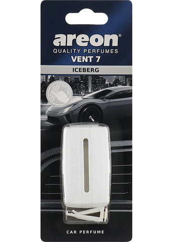 Опис Ароматизатор для авто "Айсберг" - Areon Vent 7 Iceberg Відчуйте дивовижну свіжість найчистішого альпійського гірського снігу! Спробуйте підбадьорливий ефект арктичної прохолоди в салоні власного автомобіля з застосуванням ароматизатора повітря від бренда Areon. Аксесуар у вигляді гелевого пристосування Vent-7 Iceberg наповнить салон машини, офіс або будинок освіжаюче-прохолодним ароматом снігового подиху... Відчуйте легке морозне поколювання, вдихніть на повні груди чисте повітря та відчуйте, як після зимової прогулянки повертається бадьорість! Особливості Areon Vent 7 Iceberg:- ідеально підійде як невеликий подарунок для водія;- надійно кріпиться на дефлектор;- має компактний розмір;- аромат відчувається 1-2 місяці;- дарує відчуття свободи, тонізує;- покращує розумову та фізичну активність;- придатний для автомобіля, будинку або офісу. Спосіб застосування Витягаємо з упаковки, видаляємо захисну плівку, кріпимо кліпсу на ароматизатор, встановлюємо на повітрозабірник. Орієнтовний термін служби від 1 до 2 місяців. Склад composition, plastic