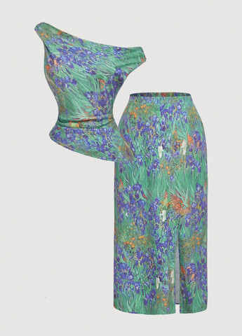 Жіночий костюм (топ, спідниця) TRNVIE. Топ без рукавів, асиметричний виріз. Спідниця без підкладки. Інструкції з догляду: машинне прання чи професійна хімчистка.