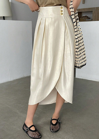 Жіноча асиметрична спідниця міді SHEIN. Фасон: запах, збирання. Розріз на стегнах. Колір білий. Талія: природна, середня. Крій: облягаючий. Тканина трохи тягнеться. Ручне прання або професійне хімчистка.