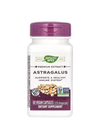 Опис Підтримка імунної системи Стандартизовано до вмісту 70 % полісахаридів Підтримує нормальну роботу імунних клітин Без ГМО Дієтична добавка Вегетаріанський і веганський продукт Кошерний продукт Натуральні рослини й трави Сімейне підприємство, засноване в 1968 році Виготовлено на підприємстві, що має реєстрацію GMP Уже понад 2000 років китайські травники цінують астрагал за його адаптогенні властивості, а також за його здатність тонізувати «життєву силу» організму, відому як Ци. Нещодавно було виявлено, що астрагал підтримує здорову імунну функцію за допомогою багатьох механізмів. Доклінічні дослідження з використанням астрагалу показали, що він може підтримувати нормальне вироблення та активність спеціалізованих лейкоцитів. Крім того, досліджувалася роль астрагалу в підтримці здорової роботи печінки та судин. Рекомендації із застосування Приймати по 1 капсулі 1–3 рази на день за необхідності, бажано під час їди. Інші інгредієнти Гіпромелоза (целюлозна капсула), мальтодекстрин маніоки, мікрокристалічна целюлоза, аскорбіл пальмітат і діоксид кремнію. Виготовлено в США з використанням інгредієнтів з усього світу, була виконана перевірка якості.