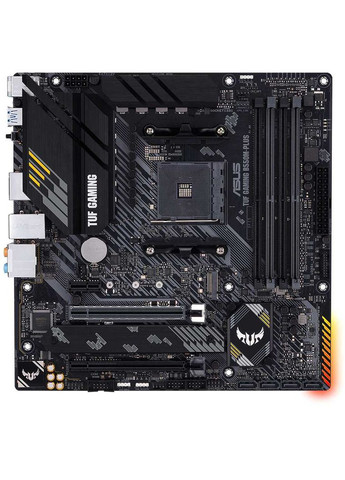 Ігрова материнська плата з чипсетом AMD B550: форм-фактор micro-ATX, PCIe 4.0, два слоти M. 2, 10 силових модулів DrMOS, 2.5G Ethernet, HDMI, DisplayPort, SATA 6 Гбіт/с, USB 3.2 Gen2 (Type-A і Type-C), синхронізована підсвітка Aura. Роз'єм AM4 для процесорів AMD Ryzen третього покоління. Оптимізована система живлення: 10 силових модулів DrMOS (8+2), роз'єм живлення ProCool, довговічні компоненти TUF, цифрове регулювання. Повноцінне охолодження: радіатори системи живлення, чипсетний радіатор, радіатор M.2, гібридні роз'єми для вентиляторів і утиліта Fan Xpert 4. Сучасні інтерфейси: M.2 (PCIe 4.0) і USB 3.2 Gen2 (Type-A і Type-C). Оптимальне рішення для онлайн-ігор: 2.5G Ethernet, захист мережевого роз'єму (TUF LANGuard), трафік-менеджер TurboLAN. Інтелектуальне шумозаглушення для мікрофона: чіткий голосовий зв'язок під час гри. ДОВГОВІЧНІСТЬ, СТАБІЛЬНІСТЬ, НАДІЙНІСТЬ. Материнські плати серії TUF Gaming - це високонадійні пристрої, створені та протестовані для роботи в особливо складних умовах. Завдяки добірній елементній базі вони забезпечать максимальну стабільність комп'ютера під час тривалих ігрових сесій. Обравши таку плату, ви також зможете скористатися перевагами програми TUF Gaming Alliance, у межах якої компанія ASUS спільно зі своїми партнерами пропонує оригінальні рішення, спрямовані на те, щоб поліпшити сумісність компонентів, полегшити складання комп'ютера та надати більше можливостей щодо його персоналізації. СИЛОВІ МОДУЛІ DRMOS. У системі живлення процесора, реалізованій на материнській платі TUF Gaming B550M-Plus, застосовують 8+2 силових модулі DrMOS, кожен із яких містить у собі драйвер, нижній і верхній MOSFET-ключі. Завдяки такій інтеграції компонентів досягається підвищена ефективність, яка потрібна для стабільної роботи процесорів AMD Ryzen третього покоління. РОЗ'ЄМ PROCOOL. ПОКРАЩЕНИЙ 8-КОНТАКТНИЙ РОЗ'ЄМ ЖИВЛЕННЯ. Підвищена міцність. Надійне під'єднання. Спеціальні роз'єми живлення ProCool, реалізовані на материнських платах ASUS, гарантують надійне під'єднання кабелів, знижений електричний опір і поліпшене розсіювання тепла, як порівняти зі стандартними. ДРОСЕЛІ TUF. Відповідаючи суворим військово-промисловим стандартам, дроселі TUF подають центральному процесору максимально стабільний струм, що покращує загальну надійність роботи комп'ютера. КОНДЕНСАТОРИ TUF. Ексклюзивні конденсатори можуть похвалитися підвищеною термостійкістю і збільшеним терміном служби. СТАБІЛІЗАТОР НАПРУГИ DIGI+. Цифрова система живлення, реалізована на цій материнській платі, забезпечує стабільну роботу та високу енергоефективність. ТЕХНОЛОГІЯ SAFESLOT. SafeSlot - це особливий спосіб кріплення слота PCIe на основі додаткових внутрішніх металевих елементів, які забезпечують підвищену міцність і стійкість до деформацій під час установлення та виймання плати розширення. ESD GUARDS. На материнських платах ASUS реалізовано повноцінний захист від потенційно небезпечних розрядів статичної електрики: повітряного електростатичного розряду напругою до +/- 10 кВ і контактного розряду до +/- 6 кВ. Це значно перевищує вимоги промислових стандартів (+/-6 кВ і +/-4 кВ, відповідно). TUF LANGUARD. Роз'єм дротової мережі Ethernet на материнських платах серії TUF додатково захищений від електростатичних розрядів і сплесків напруги. ЕЛЕКТРОЗАХИСТ ПАМ'ЯТІ. Для запобігання перевантаження за струмом і коротких замикань на материнській платі використовуються вбудовані запобіжники. Вони захищають усі компоненти пристрою, починаю