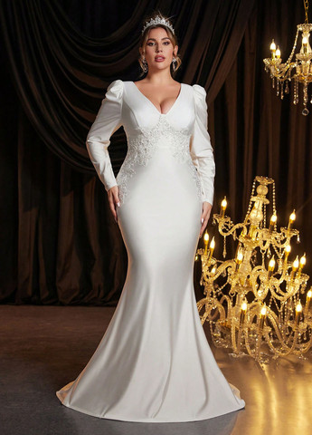 54-56 р-р: ОГ 136, ОТ 82-108, ОС 152, довжина рукава 30, довжина сукні 150, пройма 46;