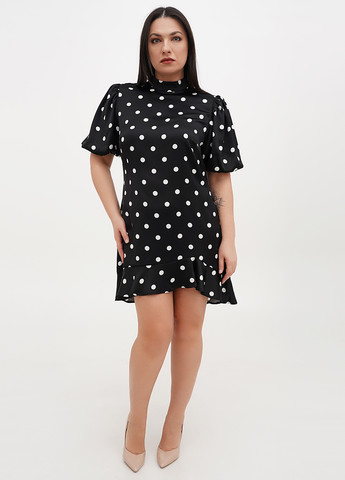 Верх із м’якого трикотажу теплого шоколадного кольору, а спідниця — легка фатинова з чорним горохом.