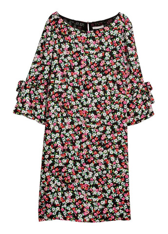 Атласна сукня прямого крою з вирізом і гудзиком ззаду на шиї та рукавами завдовжки 3/4 з пришитим бантом та розрізом на манжетах. На підкладці. Можливе пошкодження бірки