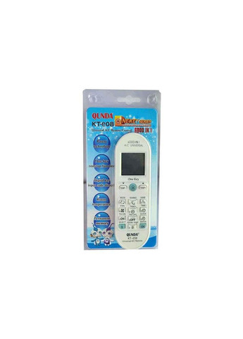 Введення коду вручну (орієнтуючись на бренд-аркуш в упаковці). Натискаємо кнопці Select та вводимо чотиризначний код, який знаходиться навпроти Вашого бренду та фіксуємо код кнопкою ОК. Перевіряємо функціонал; Метод авто пошуку. Пульт направляється на кондиціонер, затискається кнопка SELECT, і пульт видає кожні 1,5 секунд код на включення, як тільки кондиціонер вмикається або видає звуковий сигнал, фіксуємо код за допомогою кнопки ОК. Позитивними якостями даного пульта є: його універсальність (оскільки спектр замінюваних брендів не обмежений бренд листом); наявність таймера вимкнення; зручність дисплея, на якому зображено виставлену температуру, і де можна налаштувати час; наявність усіх передбачених режимів; вбудований датчик температури; можливість налаштування сили та напряму потоку повітря (якщо ця функція передбачена Вашим кондиціонером), та інші функції, що полегшують Ваше життя. Функціональність даного універсала повністю розкриє потенціал кондиціонера. Підходить для моделей ALPINE код 0252-0253, 1276, 1789 AUX код 0297-0300, 0451, 1834, 3011 CHANGHONG код 0301-0308, 2349, 3890, 4905 CHIGO код 0379-0382, 0515, 1912, 2940 CHUNLAN код 0345-0350, 0450, 0453, 3522 DAEWOO код 0203-0209, 0406, 1430, 3792 ELECTRA код 0557 ELECTROLUX код 0216-0220, 0569, 1244 FUJITSU код 0127-0137, 0464, 0552-0554 FUNAI код 0430, 0481, 3041, 3502 GALANZ код 0371, 0372, 0521, 1908, 2931 GENERAL код 0127-0137, 0464, 2000, 3712 GOLDSTAR код 0201, 0466-0469, 1737, 3539 GREE код 0309-0316, 0482, 0512, 0513 HAIER код 0266-0272, 0453-0455 HISENSE код 0332-0335, 0517, 1868, 2895 HITACHI код 0118-0126, 1656, 2173 HUABAO код 0336-0344, 2384, 2903, 4905 HYUNDAI код 0202, 0433, 0480, 0551, 3552 KAPEPA kfr-32gwnj (код 0347) KONKA код 0397, 0457-0459, 3017 LG код 0197-0200, 0514, 0572, 2248 MCQUAY код 0234-0237, 0465, 1489, 2794 MIDEA код 0260-0265, 0526, 1801, 2820 MITSUBISHI код 0001-0045, 0476-0479, 0552, 0553, 0568, 0582, 5000 OLMO OSH-S09LHQ OSAKA OSAKA OSA-12H (код 489) PANDA код 0378, 1914,