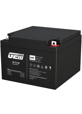 Акумуляторна батарея GEM BATTERY 12V, 28A (GS 12-28) ємністю 28 Ah та напругою 12V має надзвичайно широку галузь застосування. Ви можете використовувати її для живлення ламп, ліхтарів, електричних іграшок, електроінструментів, джерел безперебійного живлення, аварійного освітлення, систем безпеки, тощо. Батарея GEM BATTERY 12V, 28A виготовлена по технології AGM та відповідає стандартам IEC61056-1/2 і IEC60896-21/22. Компактний розмір та герметична конструкція роблять її зручною у користуванні. Батарея не потребує технічного обслуговування та гнучка для встановлення у різних положеннях.