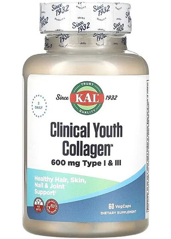 Ця добавка містить колаген першого та третього типу, який підтримує здоров'я шкіри, волосся, нігтів, суглобів та всіх складових організму. Колаген є складним структурним білоком, який зберігає силу і гнучкість у всьому тілі. З віком виснаження колагену може призвести до появи загальних ознак старіння шкіри, волосся, нігтів, м'язів, сухожиль, зв'язок та кісток. Рекомендується при: втрати еластичності та пружності шкіри сухості та лущення шкіри шкірних захворюваннях уповільненому метаболізмі надмірній вазі болях у суглобах крихких кістках м'язового болю крепатурі пошкодження сухожиль і зв'язок ослаблений імунітет занепаду сил Показання до застосування Приймайте по 2 капсули щодня. Використовувати лише за призначенням. Застереження: При вагітності, годуванні груддю, прийомі медичних препаратів чи наявності будь-яких захворювань слід проконсультуватися з лікарем перед вживанням харчових добавок. У разі виникнення побічних реакцій припиніть використання та проконсультуйтеся з лікарем. Зберігати у недоступному для дітей місці. Не використовувати, якщо зовнішня захисна мембрана відсутня чи пошкоджена. *** Виробник залишає за собою право змінити зовнішній вигляд упаковки, склад та/або консистенцію продукту. **** БАД не є лікарським засобом!