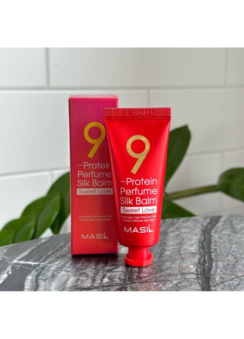Бальзам незмивний з протеїнами для пошкодженого волосся Masil 9 Protein Perfume Silk Balm, 20мл Бальзам Masil 9 Protein Perfume Silk Balm зміцнює і відновлює волосся, робить його м'яким і шовковистим. Засіб огортає кожну волосину, запобігає втраті природної вологи, позбавляє зайвої пухнастості, наповнює локони енергією та силою. Основні компоненти: протеїни - живлять і насичують вологою, захищають від негативного впливу ультрафіолетового випромінювання та інших несприятливих факторів навколишнього середовища, заповнюють порожнечі, покращують структуру локонів, мають кондиціонуючі властивості, спрощують розчісування та укладання. кератини -містять безліч корисних речовин, усувають наслідки агресивних хімічних процедур, оздоровлюють пасма, збільшують їх міцність, борються з ламкістю і посіченими кінчиками. шовк - заповнює пошкоджені клітини, стимулює вироблення колагену, усуває сухість Застосування Використовуйте засіб після шампуню та кондиціонера. Після вимивання волосся нанесіть невелику кількість засобу на вологе волосся і розподіліть по всій довжині.