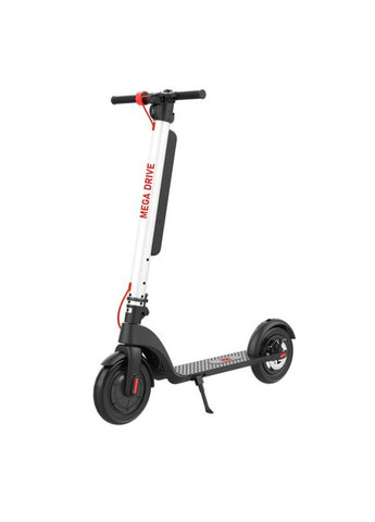 Електросамокат Mega Drive X8 білий має унікальний запатентований дизайн для зручного пересування містом. Має знімну, потужну батарею, яка розташована в підлоговій частині деки та добре захищена від вологи. Її легко зняти та заряджати вдома. Батарея захищена від крадіжки унікальним ключем, 2 штуки яких іде в комплекті. Завдяки ефективному двигуну потужністю 350 Вт, пневматичним колесам діаметром 10 дюймів, електросамокат відмінно долає нерівності і підйом в гору ухилом 15 градусів. При кліренсі в 12 см колеса добре адаптуються до будь-яких дорожніх умов, легко долають перешкоди і добре амортизують вібрації, забезпечуючи м'яку і плавну їзду. Електросамокат має комфортну деку шириною 15 см з нековзною поверхнею і зручне пряме кермо з прогумованими ручками, що забезпечує зручне положення ніг і надійне захоплення керма. Особливості: LCD-дисплей динамічно показує швидкість та ємність акумулятора. Базова швидкість до: 25 км/год. Максимальна швидкість до: 32 км/год. Максимальна дистанція до: 40 км. Електричне гальмо, дискове/ручне гальмо. Колесо: 10-дюймова пневматична шина. Передній ліхтар та заднє червоне світло. Складане кермо. Білі та червоні світлоповертачі. Навантаження: 20-150 кг. Алюмінієва підніжка з наконечником з твердого пластика. Дзвоник для попередження. Габарити в розкладеному стані : 1183 мм х 401 мм х 1106 мм. Габарити в складеному стані: 1183 мм х 401 мм х 460 мм. Зріст людини від 120 до 200 см. Вага акумулятора: 3,51 кг. Комплектація: адаптер живлення; шестигранник; посібник користувача. Одноступінчата система складання дозволяє швидко і легко складати самокат, а компактний розмір і легка вага спрощують транспортування і зберігання самоката. Також можна відкрутити обидві ручки керма для максимального зменшення розміру при перевезеннях. Рекомендовано від 16-ти років.