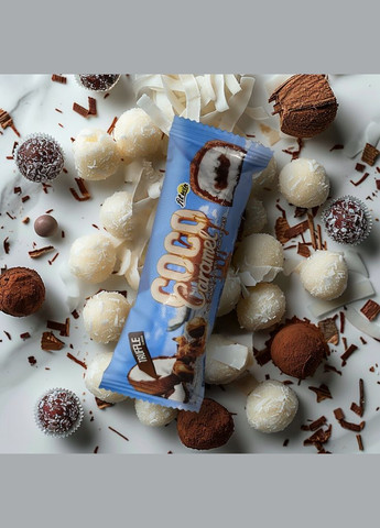 Вміст елементів у 1й порції: Калорії 372 ккал Білки 20,4 г Вуглеводи 36,0 г - з них моносахариди 23,7 г Жири 15,8 г - з них насичені жирні кислоти 9,1 г Клітковина 1,8 г Натрій 0,19 г Вітаміни: Вітамін В9 (Фолієва кислота) ) 55,0 г Вітамін C (Аскорбінова кислота) 22, мг Вітамін B3 (Нікотинова кислота) 4,4 мг Вітамін E (Токоферол) 2,3 мг Вітамін B5 (Пантотенова кислота) 1,7 мг Вітамін B6 (Адермін) 0,4 мг Вітамін B2 (Рібофлавін) 0,4 мг Вітамін B1 (Тіамін) 0,3 мг />Вітамін B12 (Ціанокобаламін) 0,7 мкг Вітамін В7 (Біотин) 13,9 мкг Інгредієнти Крахмальна патока, йогуртова глазур ( цукор, рослинний жир, сироватка, йогуртовий порошок, емульгатор соєвий лецитин, лимонна кислота, ароматизатор), ізолят соєвого білка, концентрат білка молочної сироватки, інвертний сироп, не гідрогенізований рослинний жир, соєві пластівці, вершки, ароматизовані тельний жир, молоко, сироватка, емульгатор соєвий лецитин, ароматизатор, барвники), зацукрована папайя (папайя, цукор, двоокис вуглецю), кокос (кокос, двоокис сірки), кукурудзяно-картопляний екструдат (куружне борошно, картопляне пюре) ), емульгатор лецитин, ароматизатор, L-глутамін, лимонна кислота, загусник гуарова смола, L-лейцин, мультивітамінна суміш (див. таблицю), L-ізолейцин, L-валін, антиоксидантна добавка, консервант сорбінова кислота.