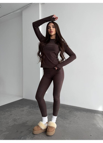 Колір: Коричневий; Сезон: Зима; Декор без декору; Фактура: Гладка; Фасон рукава: Класичний; Матеріал: Трикотаж; Країна виробник: Україна; Обхват грудей: 42/44: 86/98 см. 46/48: 90/104 см. 50/52: 94/108 см.; Довжина рукава виробу: 42/44: 75 см. 46/48: 76 см. 50/52: 77 см.; Обхват талії: 42/44: 68/80 см. 46/48: 72/84 см. 50/52: 76/88 см.; Обхват стегон: 42/44: 90/106 см. 46/48: 94/110 см. 50/52: 98/114 см.; Довжина штанів: 42/44: 100 см. 46/48: 101 см. 50/52: 102 см.; Довжина виробу по спинці: 42/44: 60 см. 46/48: 62 см. 50/52: 63 см; Склад: 70% поліестер, 25% бавовна, 5% спандекс; Візерунок: Однотонний; Застібка: Без застібки; Довжина: Довгий;