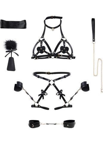 Практикуєте жорсткі БДСМ ігри або тільки плануєте відкрити завісу таємниці та зануритися у світ нестандартних ласок? Тоді вам знадобиться розкішний набір аксесуарів, що складається з 10 інструментів пристрасних катувань. Девайси виготовлені з високоякісної екошкіри, яка чудово зберігає свої властивості та характеристики впродовж тривалого використання. Комплект містить: 1. Шкіряна маска на гумці, з внутрішньої сторони велюр (19х7 см) 2. Кляп: пластикова кулька з отворами на шкіряному ремінці з регульованою застібкою (довжина ремінця 62 см, діаметр кулі 4,5 см) 3. Нашийник із повідцем. З внутрішньої частини нашийника штучне хутро, є півкільце для повідця та ремінець з регульованою застібкою (43х5 см, ремінець + 8 см). Повідець із карабіном і тримачем для руки (97х1 см). 4. Наручники, з внутрішньої частини штучного хутра, на ремінці з регульованою застібкою, з'єднані ланцюжком з карабіном на одному боці (27х5 см, ремінець + 10 см). 5. Поножи, з внутрішньої частини штучного хутра, на ремінці з регульованою застібкою, з'єднані ланцюжком з карабіном на одному боці (27х5 см, ремінець + 10 см). 6. Шкіряна плетка, дерев'яна ручка обмотана шкіра та тримач для руки та 20 тонких смужок (ручка 16 см, смужки 32 см). 7. Шкіряна мінішлепалка з контрастним швом і шнурком на руку. 8. Бандажна мотузка (4,8 метра). 9. Секс кубики. 10. Металеві затискачі для сосків із гумовими наконечниками, шурупом регулятором і маленьким дзвіночком (6 см). Колір: Фіолетовий