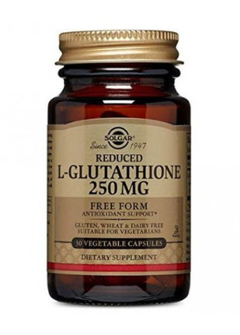 Найголовніший антиоксидант нашого організму, що грає важливу роль в обороні організму проти хвороб, токсинів, вірусів, несприятливого впливу навколишнього середовища, випромінювань і окисного стресу. Функціональна дія: Глутатіон - найбільш важлива захисна речовина, яка знаходиться в кожній клітині організму, а синтезується переважно в печінці. Найбільша його кількість зосереджена в серці, мозку, легенях і печінці. Немає такої тканини в організмі, яку не захищав би Глутатіон! Глутатіон-з'єднання, до складу якого входять три амінокислоти - гамма-глутамінова кислота, цистеїн і гліцин. Основна функція глутатіону-антиоксидантний захист. Глутатіон інактивує активні форми кисню (АФК), які викликають оксидативний стрес, що пошкоджує клітину. Захищає всі клітини організму від пошкодження, викликаного окислювальним стресом і перекисним окисленням ліпідів, а також підвищує їх резистентність до шкідливих впливів. Адже, як відомо, вільні радикали можуть пошкодити ДНК і РНК. Глутатіон відновлює інші антиоксиданти, які в боротьбі з вільними радикалами самі окислюються і стають небезпечними для організму (вітаміни С, Е і бета-каротин). Глутатіон захищає всі клітини організму від пошкоджень. Є гепатопротектором-захищає клітини самої печінки і навіть сприяє їх регенерації. Має потужну детоксикаційну дію. Нейтралізує токсичні впливи вільних радикалів і перекисів, ксенобіотиків, важких металів, радіації, рентгенівських променів, ліків, токсичних речовин, а також виводить їх з організму. Є иммунопротектором. Захищає клітини імунної системи від окислювальних пошкоджень і контролює реакції запалення (стимулює або пригнічує). Має протизапальну дію. Регулює процеси клітинного поділу, диференціювання і апоптозу (природної загибелі). Стимулює поділ клітин і прискорює процеси загоєння. Онкопротекторна дія глутатіону реалізується шляхом нейтралізації вільних радикалів, посилення дії інших антиоксидантів, запобігання мутацій ДНК і участі в біосинтезі нуклеїнових кислот. Також підсилює активність TNF (фактора некрозу пухлини) і підвищує опірність здорових клітин. Глутатіон впливає на шкіру і волосся. Відбілює шкіру, перетворюючи еумеланін (темний пігмент) в феомеланін (світлий пігмент). Також підвищує пружність шкіри і розгладжує її, зменшуючи кількість зморшок. Стимулює ріст волосся і зменшує їх випадання за рахунок блокування ферменту протеїнкінази С, яка викликає деградацію волосяних фолікулів. Знижує рівень холестерину і чинить антиатеросклеротичну і судинорозширювальну дію. Показання до застосування: Всі хронічні захворювання, що об'єднуються в групу вільнорадикальної патології. Захворювання серцево-судинної системи: атеросклероз, ІХС, тромбози; Ураження печінки (гепатити, жировий гепатоз, цироз) будь-якого походження-вірусні, лікарські, токсичні (в т. ч. алкогольні); Захворювання периферичної і центральної нервової системи: недоумство, аутизм, хвороби Альцгеймера і Паркінсона, розсіяний склероз, ін.; Профілактика та програми лікування катаракти, глаукоми та вікової дегенерації сітківки; Інтоксикації різного походження. Захист печінки, шкіри, очей, нирок, та інших органів від токсичних продуктів, які утворюються внаслідок забруднення навколишнього середовища, проживання в екологічно несприятливих умовах, куріння і хронічного 