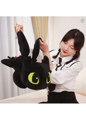 Іграшка м'яка плюшева Беззубик Нічна Фурія Дракон 60 см Чорний. Плюшева іграшка Дракон Беззубик прикрасить собою інтер'єр будь-якої дитячої кімнати хлопчика чи дівчинки. Іграшка буде компаньйоном у далекій подорожі. М'який та затишний живіт цілком може замінити подушку. Іграшка приємна на дотик, її можна використовувати як зручну м'яку іграшку-подушку антистрес або оригінальний предмет інтер'єру. З нею приємно обійматися і засипати в обійми з нею. Всі деталі іграшки вишиті, тому можна не боятися, що дитина пораниться. Іграшка виконана з найякісніших і найприємніших на дотик матеріалів і на 100% безпечна навіть для найменших дітей, не магнітить до себе пил, не вигоряє і не линяє. Особливості: - міцна статура дозволяє повозитися і побалуватися з іграшкою, не боячись пом'яти або зіпсувати її вигляд - можна використовувати як цікавий елемент інтер'єру - виготовлена ​​з високоякісних матеріалів Характеристики: 1. Матеріал: Плюш 2. Наповнювач: Холлофайбер гіпоалергенний 3. Розмір: 60 см