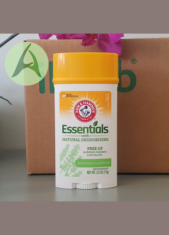 Arm & Hammer, Essentials, дезодорант із натуральними дезодорувальними речовинами, розмарин і лаванда, 71 г Опис Розмір 7*14 см 24 години захисту від запаху Ще більше зволожувальних інгредієнтів і речовин, що борються з запахами Стандарт чистоти Без алюмінію, парабенів і фталатів Містить харчову соду Arm & Hammer™ і натуральні рослинні екстракти для вбирання запахів і боротьби з ними. Рекомендації із застосування Застосовувати лише в зоні пахв. Інші інгредієнти Дипропіленгліколь, вода, пропіленгліколь,, стеарат натрію, бікарбонат натрію (харчова сода), олія плодів коріандру (Coriandrum sativum), олія з листя розмарину (Rosmarinus officinalis), олія лавандину (Lavandula hybrida), ароматизатор, етилгексилгліцерин, октенидину гідрохлорид, тетранатрій ЕДТК, алантоїн. Попередження Не наносити на пошкоджену шкіру. Якщо з’являється висип або подразнення, припиніть використання. Зберігати в недоступному для дітей місці.