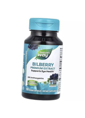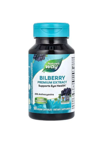 Bilberry Premium Extract від Nature's Way є ретельно розробленим продуктом для тих, хто прагне урізноманітнити свій раціон завдяки рослинних добавок Розмір порції: 2 капсули Кількість порцій: 30 Кількість в 1 порції % від добової потреби Усього вуглеводів <1 г <1%* Чорна бузина (Sambucus nigra L.) (ягоди) 250 мг ** Екстракт плодів чорниці (стандартизований до 25% антоціанів – 40 мг) 160 мг ** *Відсоток від добової потреби заснований на дієті в 2000 калорій. ** Добову потребу не визначено