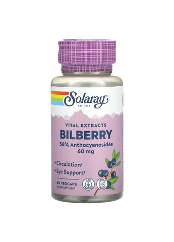 Екстракт чорниці Bilberry Berry Extract 60 мг Solaray, 60 капсул Опис продукту Solaray Bilberry Berry Extract — це дієтична добавка на основі концентрованого екстракту чорниці (Vaccinium myrtillus), відомої як природне джерело антоціанів і флавоноїдів. Чорниця здавна використовується у харчуванні як ягода, що підтримує гостроту зору, еластичність судин і загальний тонус організму. Продукт від бренду Solaray (США) містить стандартизований екстракт, що гарантує стабільну якість та концентрацію активних речовин у кожній капсулі. Як це працює Екстракт чорниці є джерелом природних антиоксидантів — антоціанів, які сприяють захисту клітин від впливу вільних радикалів. Регулярне вживання добавок із чорницею може допомагати підтримувати ясність зору при навантаженні на очі (робота за комп’ютером, штучне освітлення), а також зберігати природний баланс у кровоносній системі. Завдяки антиоксидантним властивостям, чорниця часто входить до програм для загального зміцнення організму та підтримки здоров’я шкіри. Переваги продукту Натуральний екстракт чорниці — концентроване джерело антоціанів і флавоноїдів. Підтримка гостроти зору при тривалому навантаженні на очі. Антиоксидантна дія — сприяє захисту клітин від окисного стресу. Висока чистота сировини — без штучних барвників і консервантів. Легке засвоєння — натуральна капсульна форма без подразнення травлення. Контроль якості Solaray — стандартизований екстракт із перевірених джерел. Склад До складу входять: Екстракт плодів чорниці (Vaccinium myrtillus) Допоміжні рослинні компоненти для стабілізації капсули Желатинова оболонка (рослинного походження) Точний вміст активних речовин може відрізнятися залежно від партії. Актуальний склад наведено на упаковці. Рекомендації щодо застосування Приймайте по 1 капсулі на день під час їжі, запиваючи водою. Для кращого ефекту можна приймати курсом протягом 1–2 місяців. Не перевищуйте рекомендовану добову норму. Форма випуску Банка — 60 капсул. Основні характеристики Бренд Solaray Країна виробництва США Форма Капсули Кількість 60 шт. Активні компоненти Екстракт чорниці, антоціани, флавоноїди Призначення Підтримка зору, антиоксидантна дія, загальний тонус Особливості Без ГМО, без барвників, натуральне походження Застереження Не є лікарським засобом. Не перевищуйте рекомендовану дозу. Не застосовуйте у разі індивідуальної чутливості до компонентів. Вагітним і жінкам, які годують груддю, рекомендується проконсультуватися з фахівцем. Зберігати у сухому, прохолодному місці, подалі від дітей. Solaray Bilberry Extract — це натуральна підтримка здоров’я очей і клітин, створена на основі концентрованого екстракту чорниці з гарантованою якістю американського виробництва. Не є лікарським засобом.