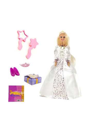 ця лялька нагадує казкову принцесу, з такою ній малюк зможе подорожувати в казкових королівствах і країнах. Вона одягнена в білу пишну сукню, на ноги можна взути рожеві туфлі, а для голови призначена рожева корона. Нехай малюк придумає безліч красивих історій і сюжетів для гри. Наприклад, принцеса хоче відправитися на бал, а для цього їй потрібно виглядати чарівно. Ви можете допомогти їй з цим нелегким завданням, наприклад, продумати і створити нові образи і наряди. На її довгі і шикарне волосся можна зробити купу нових зачісок і укладок, з якими вона буде виглядати чудово. На шиї у ляльки є сердечко, натиснувши на яке вона буде видавати музичні звуки, а заодно область кольє подсветится. Лялька працює за допомогою батарейок LR44 (не входять в комплект). Така лялька буде найулюбленішою іграшкою і подружкою вашої дівчинки. Гра з такою лялькою розвиває уяву і фантазію. Лялька виготовлена з екологічно чистого пластику, нешкідливого для здоров'я дитини. Рекомендується для гри дітям старше 3 років. У комплект входить: лялька-1 шт .; інструкція-1 шт .; корона-1 шт .; гребінець-1 шт .; дзеркальце-1 шт .; коробочка-1шт .; коробочка для диска-2 шт. розмір 29х17 см