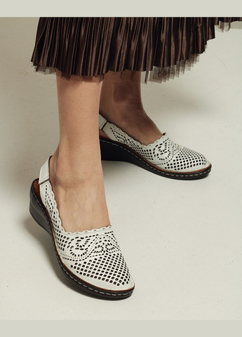 Туфлі комфортні м'які літні Phany із перфорацією білого кольору шкіряні. Туфлі з м'якою та комфортною устілкою. Висота каблука - 5 см. Висота платформи – 1 см. Розмір Довжина устілки 36 23.5см 37 24см 38 24.5см 39 25см 40 25.5см 41 26см 42 26.5см
