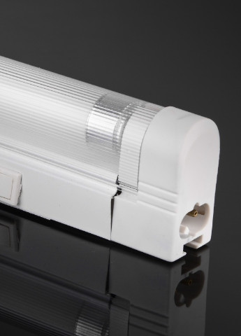 Накладний світильник на одну люмінесцентну лінійну лампу. Його корпус виготовлений з литого алюмінію, пофарбований у білий колір. Екран, що захищає лампу від випадкових пошкоджень, виконаний із напівпрозорого пластику. На корпусі є невеликий тумблер-вимикач. Зазвичай, такі світильники монтують на стіну. Найчастіше їх використовують для того, щоб висвітлити нежитлові території: склади, торгові зали, офіси, технічні приміщення, рідше - житлові будинки. Світло від люмінесцентних ламп не таке яскраве, як світло від ламп розжарювання. Але їхня випромінююча поверхня більша, за рахунок чого і компенсується світловіддача. Світло люмінесцентних ламп за своїм спектром схоже на денний, що дозволяє дуже чітко розрізняти кольори. Ці лампи мають досить низьку робочу температуру, зазвичай вона та сама, що й у навколишнього середовища. Ще одним плюсом люмінесцентних ламп є вибір відтінків, який досить широкий і залежить від сорту люмінофорів, що використовуються в лампі. Також вони дозволяють економити електроенергію, адже споживають її в 4-5 разів менше, ніж аналогічні по світловіддачі лампи розжарювання, та й служать люмінесцентні лампи довше: до 18 тис. годин.