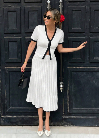 ACCUA – саме той бренд, який знає, що необхідно у гардеробі будь-якої жінки. Створений у Франції бренд, природно, надихається француженками та їх неповторним стилем, а також романтичною атмосферою, яка панує у великих містах країни. Колекції бренду вдало розділені на кілька категорій. Переважає класичний стиль – білі, чорні, сірі та кремові кольори, а також строгий, хоч і вільний, крій. Такі колекції представлені переважно брюками, сорочками, блузами, кофтами та кардиганами. Саме ці базові речі будь-яка модниця може поєднувати разом та отримувати відмінний офісний образ, лук для навчання чи ділових зустрічей. Будь-яка дівчина, любляча елегантність та витонченість у речах знайде собі предмети ACCUA до душі! Жіночий красивий і стильний кардиган з коротким рукавом, дві накладні кишені. У комплект входить плетений поясок. Дуже універсальний, зручний та модний одяг! На розмір 42 довжина виробу 75 см. Пояс у комплекті.