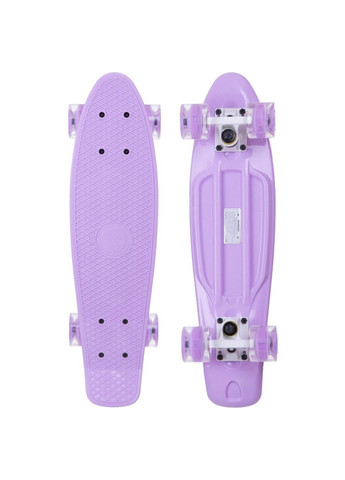 Тип: пенні борд зі світними колесами. Матеріал деки: пластик. Матеріал коліс: поліуретан. Розмір: 56х15 см. Тип підшипників: АВЕС-7. Максимальна вага користувача: 80 кг. Колір: фіолетовий-білий з пластиковою декою можна використовувати для повсякденного катання містом та виконання трюків. Початківці райдери оцінять керованість борда. Дошка має довгасту форму, завдяки цьому скейтбордисту простіше тримати баланс. Колеса виготовлені з поліуретану. Під час руху вони світяться. Підшипники типу АВЕС-7 стійкі до зношування, виготовлені з високою точністю. Такі підшипники не шумлять під час обертання, мають мінімальне тертя. Покриття на дошці перешкоджає ковзанню. Переваги пенні борда: Підвищена прохідність. Підходить для повсякденної їзди і трюків. Точні підшипники. Характеристики Вид Пенні борди итель Китай