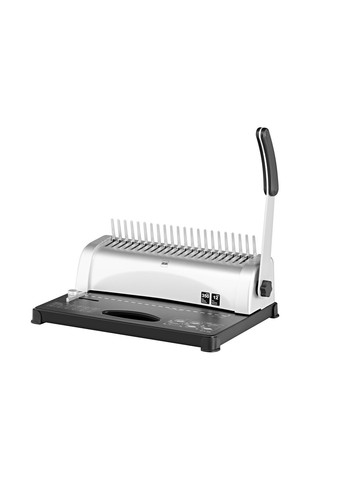 Офісна модель для виконання середніх обсягів робіт з палітурки. Легкий, компактний, малобюджетний і простий у використанні біндер. Потужність перфорації до 16 аркушів. Товщина палітурки до 250 аркушів. Можливість використання всіх діаметрів пружин від 6 до 32 мм. Регулювання глибини перфорації (від 2,5 до 6,5 мм) дозволить уникнути розриву отворів у товстій палітурці і збереже естетичний вигляд у тонкій брошурі. Має функцію відключення всіх ножів, що дозволяє працювати з нестандартними форматами. Металевий корпус.
