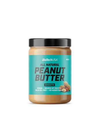 BioTech Peanut Butter - вегетаріанське арахісове масло містить тільки натуральні інгредієнти. Продукт з високим вмістом клітковини, джерело білка, для тих, хто стежить за своїм раціоном харчування і любить горіхову пасту. активний спосіб життя та спортсменів. Вуглеводи, що містяться в складі, мають низький глікемічний індекс. >Тримайте банку щільно закритою в сухому, прохолодному і добре захищеному місці.Після розтину зберігати в холодильнику і вживати протягом 4 тижнів.Вміст елементів у 1й порції25 грамКалорії 157 ккалЖири 13 г- насичені 1,2 гВуглеводи 2 г- цукор 1,6 г Харчові волокна 2,2 гБілок 7 гСіль 0,18 гІнгредієнтиАрахісова олія (із арахісу (79,4%), шматочки арахісу (19,9%), кухонну сіль