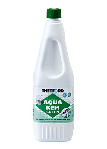 Рідина для біотуалету Thetford Аqua Кeм Green, 1.5 л • Рідина для нижнього бака • Безпечний для навколишнього середовища септик екологічного складу (дозволяється вилив в ґрунт) • Сприяє розрідженню та частковому розчиненню твердих відходів для полегшення спорожнення резервуару • Усуває неприємні запахи і має дезодоруючий ефект • Запобігає скупченню газів • Підтримує чистоту бачка Спосіб використання: додавати 75 мл рідини-септика в бачок для відходів на кожні 10 л ємності бака. Потім додати 2 л води. Ефективність однієї дози зберігається до 4 днів.