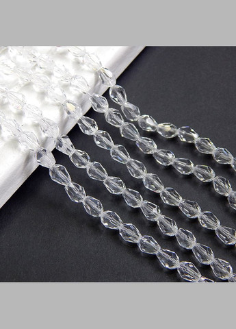 Скляні грановані (кришталеві) намистини, прозорі. Форма: крапля. Розмір: 8х6 мм. Кількість: близько 68 штук в упаковці. Ціна вказана за 1 упаковку. Кришталеві краплі — це декоративні грановані намистини зі скла, що вирізняються видовженою краплевидною формою та яскравим блиском. Завдяки багатогранній поверхні, скляні крапельки ефектно виблискують при освітленні, створюючи витончений акцент у будь-яких прикрасах. Кришталеві намистини-крапля можуть бути прозорими, напівпрозорими або непрозорими, мати дзеркальне чи райдужне АВ-покриття, що робить їх ідеальними для поєднання з іншими матеріалами. Використання: Скляні грановані краплі застосовуються у виготовленні сережок, браслетів, кольє, чокерів, а також для вишивки, декорування одягу, взуття та аксесуарів. Грановані намистини-крапелька також часто застосовують у бісероплетінні та інтер'єрному декорі. Це універсальний матеріал, який цінують за якість, блиск та виразність у прикрасах ручної роботи.
