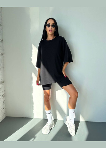 Стильний літній комплект для дівчаток складається з футболки крою "Oversize" з однотонного стрейч-куліра, а також вільних об'ємних шортів з двониткового футера. Футболка з короткими рукавами, округлим вирізом, спущеною лінією плеча, спереду нанесений стильний накат, виконаний методом шовкотрафаретного друку. Шорти з високою посадкою, кишенями у бічних швах, широкою гумкою у поясі та шнурком. Комплект стане незамінним модним обновленням літнього гардеробу юної модниці, рекомендується доповнити образ об'ємними кросівками, босоніжками в спортивному стилі або кедами. Полотно: стрейч-кулір, двонитковий футер Склад: 95% бавовна, 5% еластан; 80% бавовна, 17% поліестер, 3% еластан Рекомендації щодо догляду: прати при температурі не більше 30°C, малюнок прасувати тільки за виворотом.