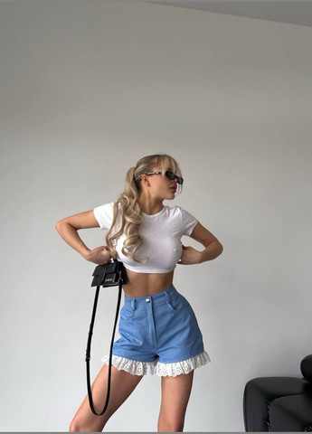 Колір Блакитний / Висота посадки Середня талія / Довжина виробу Міні / Матеріал Костюмна
