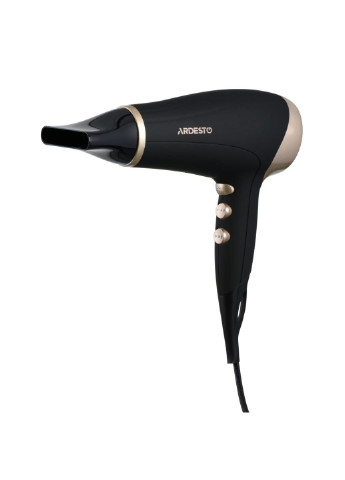 Фен Ardesto HD-522 Вишуканий дизайн. При першому погляді на фен Ardesto HD-522 стає зрозуміло, що перед вами продуманий функціональний пристрій. Якщо виробник відповідально підійшов до візуальної складової, то робочі характеристики точно ні в чому не поступляться дизайну. А зовнішність дійсно заворожує: матовий чорний корпус із золотистою обробкою металік і глянсовою пластиковою насадкою утворюють тандем благородних кольорів і фактур, що поєднуються. Форма приладу класична: елегантно обтічна і ергономічно зручна. Режими роботи. Максимальна потужність фена дорівнює 2200 Вт. Двигун з такими показниками здатний забезпечити 3 температурних режимів і 2 режимів швидкості. Перемикаються вони за допомогою кнопок на рукояті, що легко натискається однією рукою. Функція Cool Shot. У вашому розпорядженні не лише вплив гарячим повітрям, а й холодний потік повітря. Він допоможе зробити завершальний штрих: прохолодна дія закриває лусочки, що надає волоссю блиску, а також допомагає закріпити укладання. Варто зауважити, що травмованому волоссю може не підійти гаряче повітря, і саме тут стане в нагоді опція холодного пострілу. Знімний фільтр. Конструкція фена передбачає зняття задніх ґрат. Періодично ця частина може засмічуватися пилом, твердими частинками, волосками, адже вона є фільтром. Прочистивши його, ви легко повернете цю частину конструкції на місце. Концентратор у комплекті. Насадка концентратор, що поставляється в комплекті, орієнтована на створення укладок із застосуванням технік надання волоссю прикореневого об'єму, вирівнювання локонів та підкручування кінців пасм. Захист від перегріву. Захищаючий від перегріву хутроанізм необхідний будь-якій техніці з двигуном. Коли він перегрівається, відбувається вимкнення. Після відновлення нормальної температури, пристрій знову повністю працездатний.