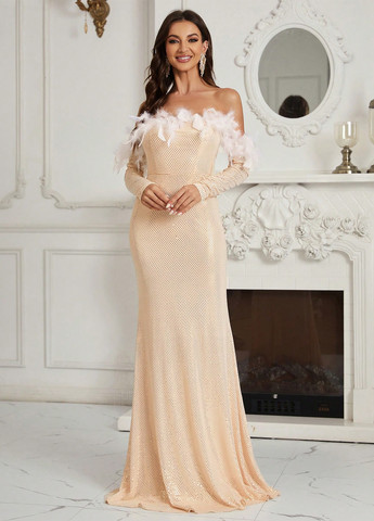 Матеріал Поліестер / Колір Бежевий / Фасон З відкритими плечима / Довжина виробу Максі / Стиль Вечірній
