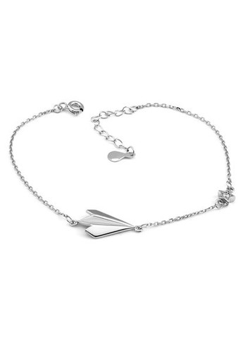 Браслет срібний Літачок з паперу на тонкому ланцюжку — гарний та ніжний аксесуар, що підкреслює витонченість вашого зап'ястка. Такий тип прикраси дуже популярний сьогодні, за рахунок своєї концепції та виконання. По-перше, це 100% мінімалізм, нічого зайвого, тільки гарна оригінальна форма – тонкий ланцюжок. По-друге, це ціна прикраси. Вона дуже низька, оскільки вага такого браслета дуже маленька. Тому купити ювелірні вироби такого стилю можна навіть декілька. Замочок також досить практичний. Декілька великих кіл наприкінці ланцюжка, дозволить вам дуже майстерно регулювати розмір прикраси. Наприклад, носити її поверх одягу, застебнувши максимально або надягати на вузьку частину зап'ястка, вибираючи мінімально можливий варіант. До того ж ви ніколи не помилитеся з розміром, якщо вирішите браслет срібний подарувати. Купити браслет зі срібла ви можете у таких розмірах: 16 (+ 3 см подовжувач). Літачок — тут все просто та доступно. Це легкий, повітряний, невагомий та дуже оптимістичний символ. Іноді не потрібно нічого винаходити чи вигадувати, щоб зробити комусь приємне. Як краще висловити свої почуття, якщо не з ним. Гарне блискуче мерехтіння полірованої поверхні, притягує погляди, тож вся увага буде зосереджена тільки на вас. Кулон срібний літачок зручно влаштується на потрібному місці, щоб ніжно поблискувати своєю поверхнею. Виріб вкритий родієм, що забезпечує йому довговічність та гарні характеристики зносостійкості, запобігаючи появі подряпин.