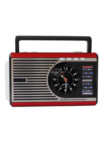 Портативне бездротове радіо ELETREE Meier M-U4 з вбудованим годинником, аналоговим кварцовим механізмом, MP3-плеєром, USB і TF картами, а також ліхтарем. Підтримує FM, AM, SW 4 діапазони радіо, має вбудований акумулятор, який можна заряджати. Підключення через AUX, ідеальне для дому або подорожей.