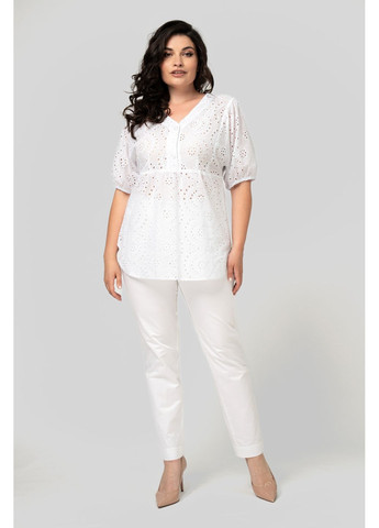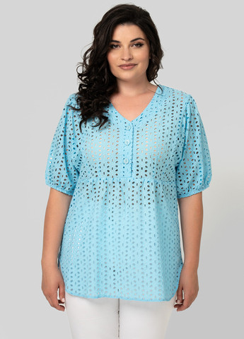 Блуза виконана з прошви на трикотажній основі – м’якої, приємної до тіла тканини турецького виробництва. Рукав зі спущеною лінією плеча та збірками по окату додає жіночності.