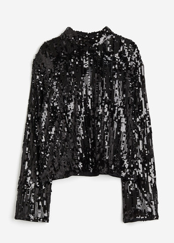 Блуза з паєткової сітки з коміром-стійкою, розрізом на горловині з потайними ґудзиками, злегка спущеними плечима та довгими широкими рукавами. Підкладка з трикотажу. Спина: довжина: 52,5 см (розмір M), рукав: довжина: 59,4 см (розмір M), плече: ширина: 49,4 см (розмір M). Можливе пошкодження бірки.